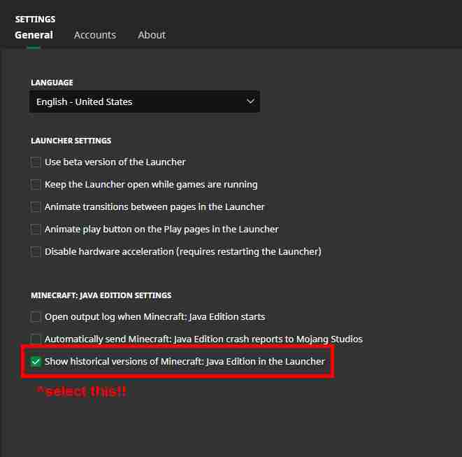 How to enable old versions on official miencraft launcher